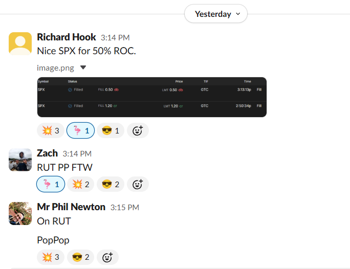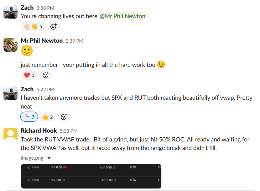 Nearly a dozen students posting wins today across both SPX and RUT. This is what replication looks like.