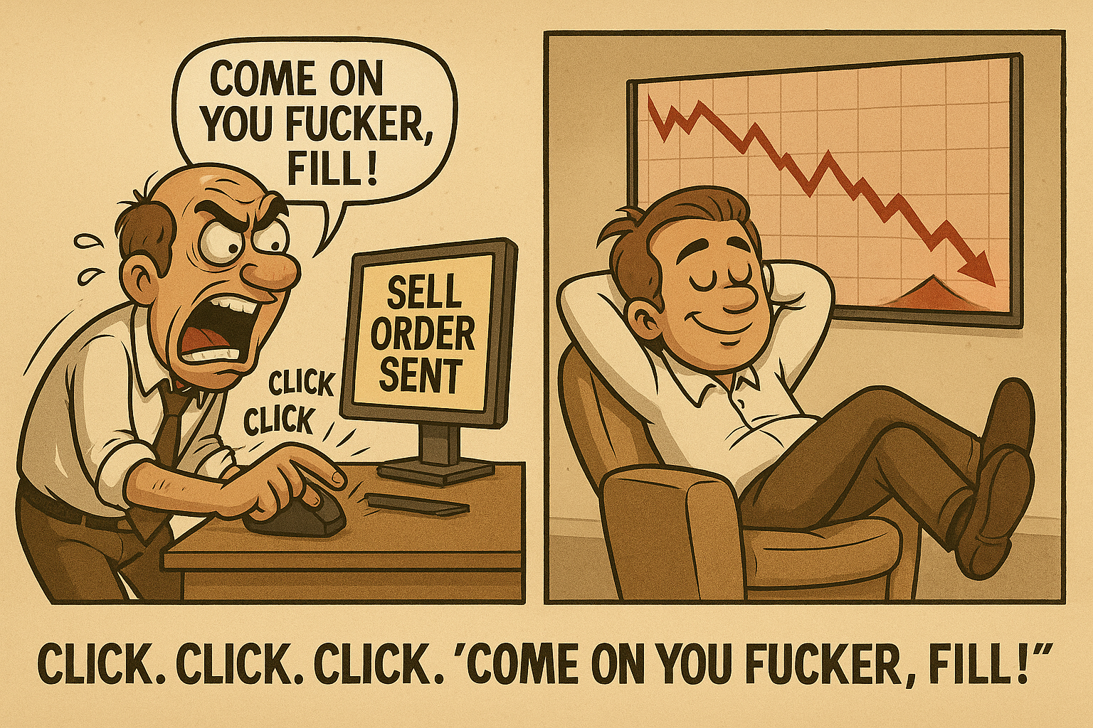 Meanwhile, over at AntiVestor HQ, a trader calmly executed a system flip with four clicks and one expletive.