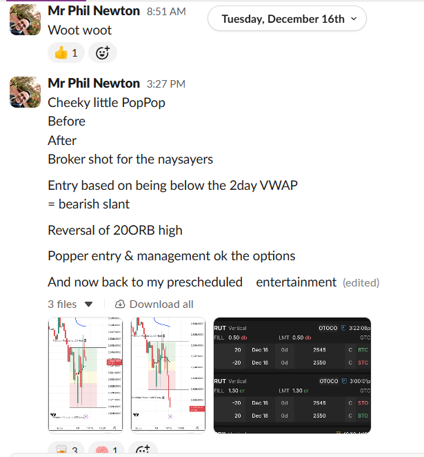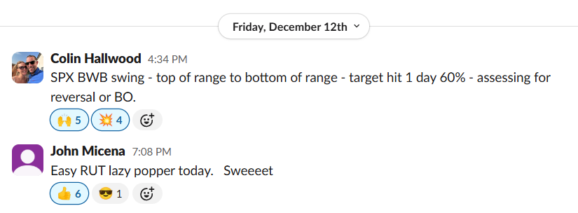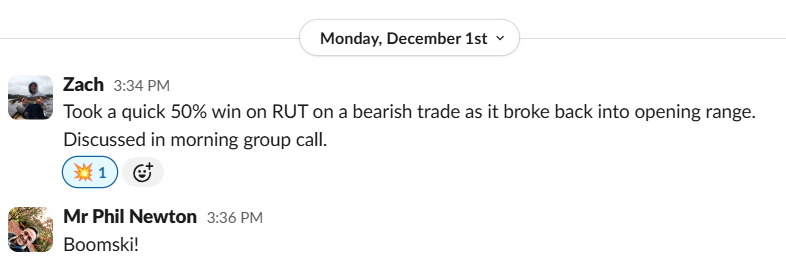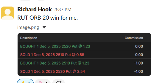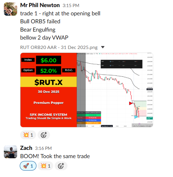 “BOOM! Took the same trade” (RUT ORB20 52% ROC, Dec 30)