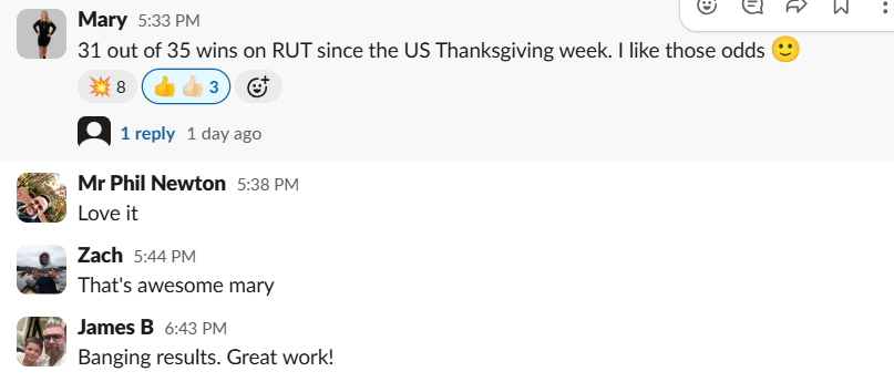 “31 out of 35 wins on RUT since the US Thanksgiving week. I like those odds “