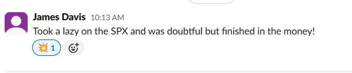 “Well, we were bearish, the Lazy gave me a bull signal on SPX but I was unsure so opted to only go for XSP rather than full SPX and it came in a winner!” (FOMC day)