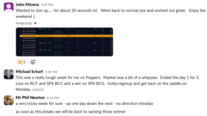 “This was a really tough week for me on Poppers. Market was a bit of a whipsaw. Ended the day 1 for 3. Loss on RUT and SPX BO1 and a win on SPX BO3. Gotta regroup and get back on the saddle on Monday.”