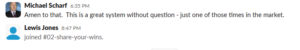 | Duncan G. | 3 wins | Thu 4/23. “Flipped and flopped early on but eventually got three successful trades. Lunch time 1x bo and 2x VWAP late in the session” |
